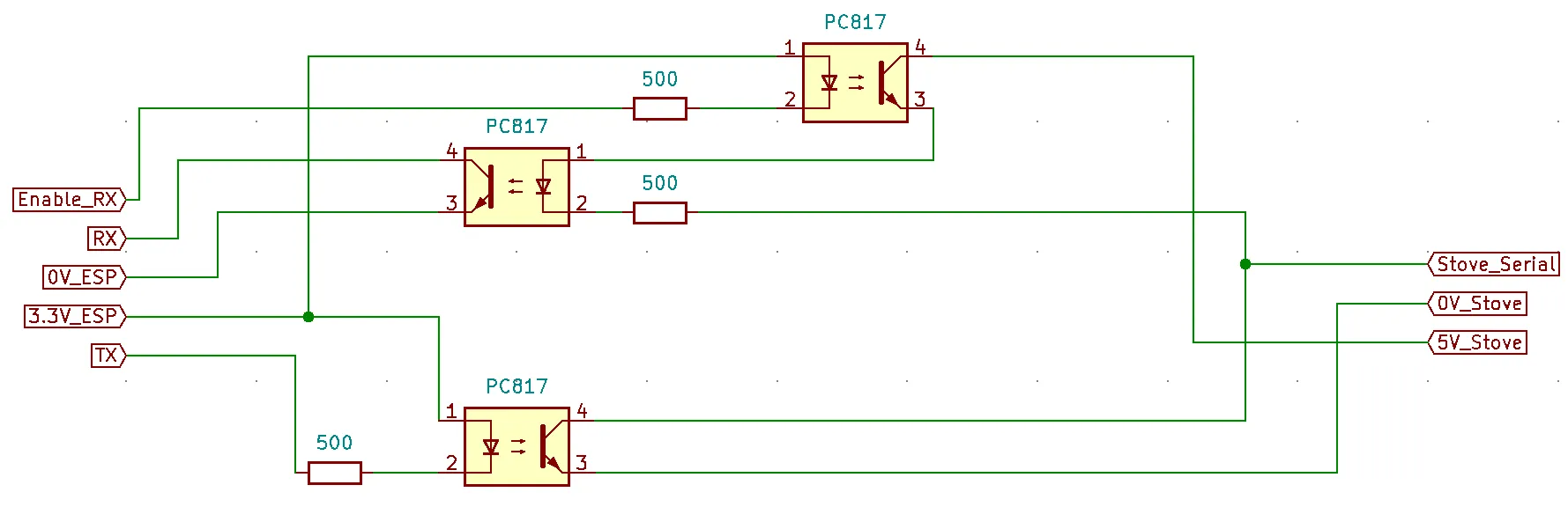 Most MicroNova-based pellet stoves have a serial output. In most cases this output has 4 pins: GND, 5 V, 20 V and DATA.